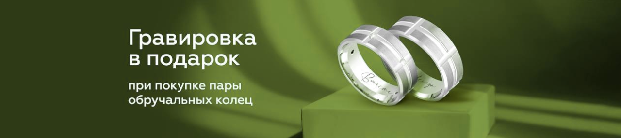 При покупке пары обручальных колец Вы получаете ГРАВИРОВКУ ИМЕНИ на каждом кольце в подарок.